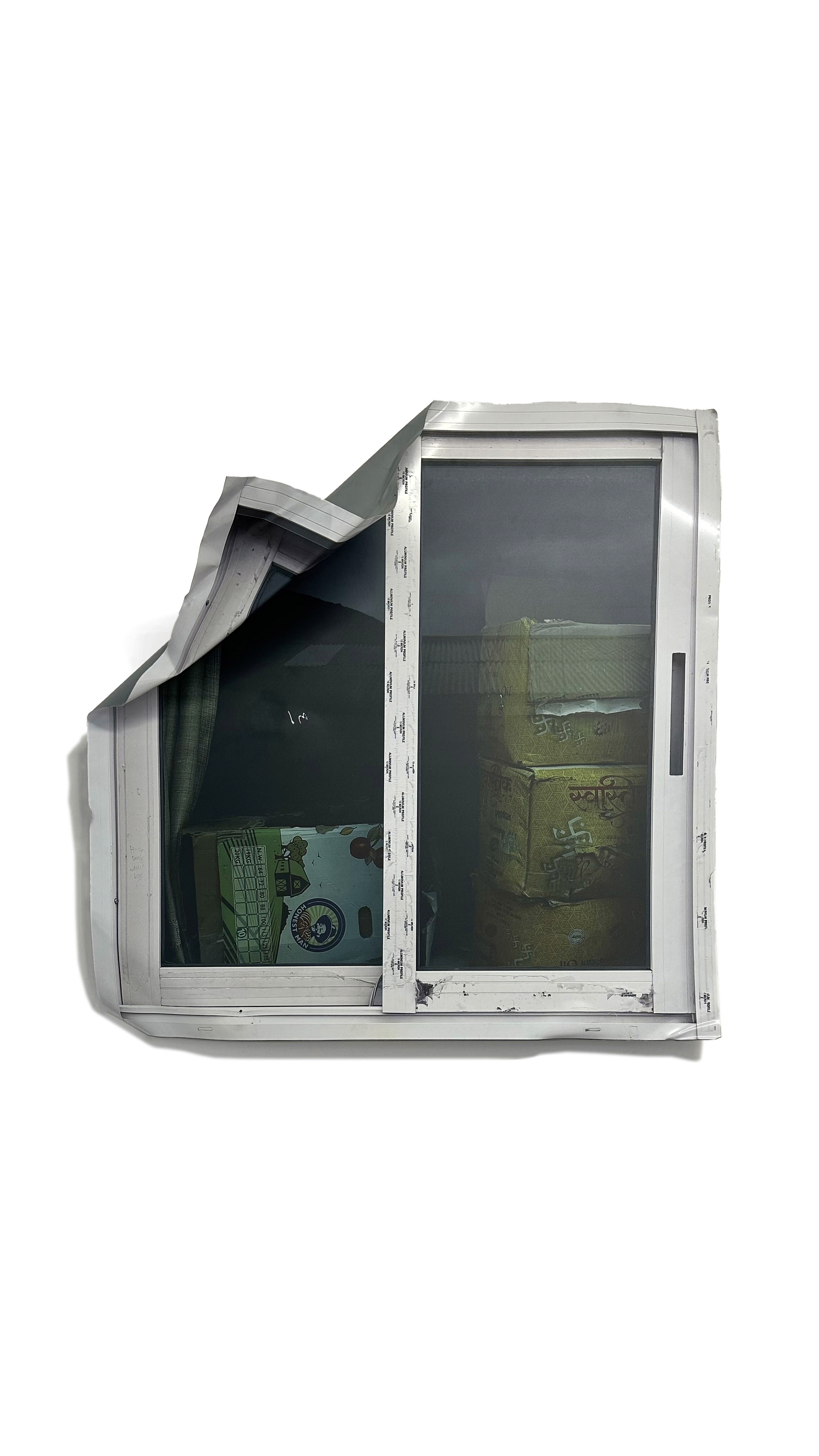 Serie di finestre e porte stampate su alluminio e manipolate dall'Artista. Tutti i campioni provengono dal Nepal.