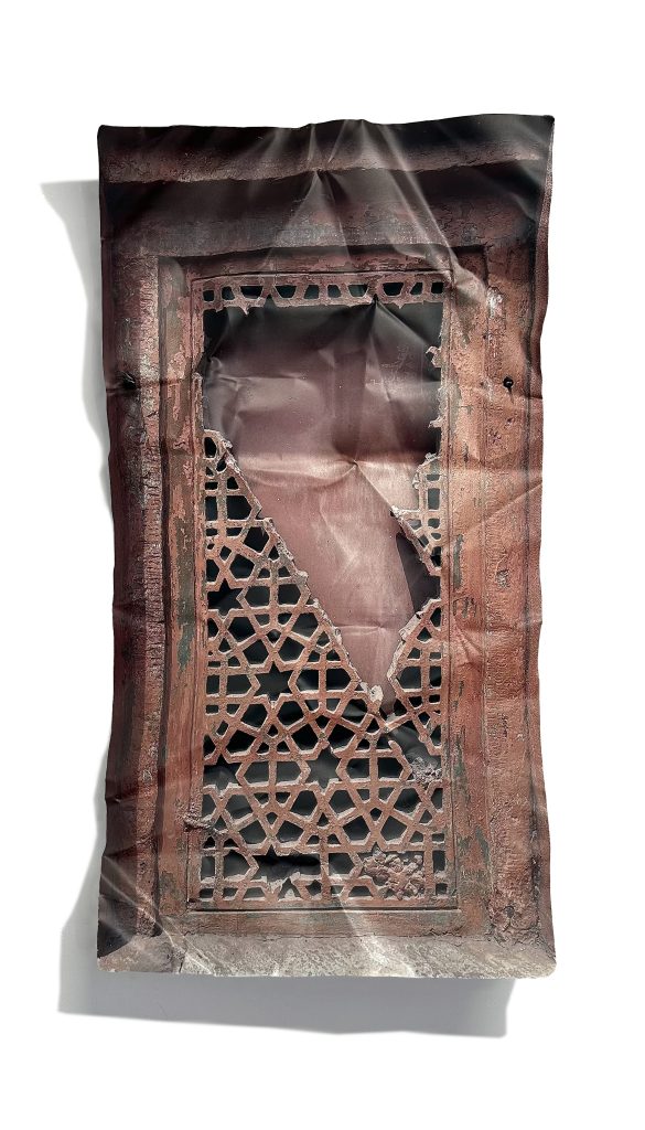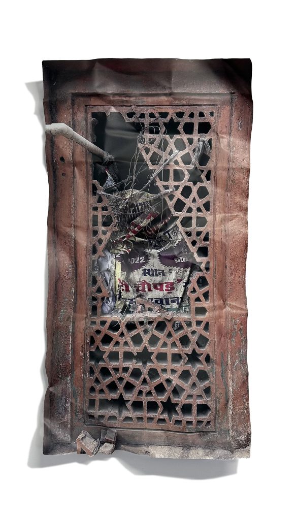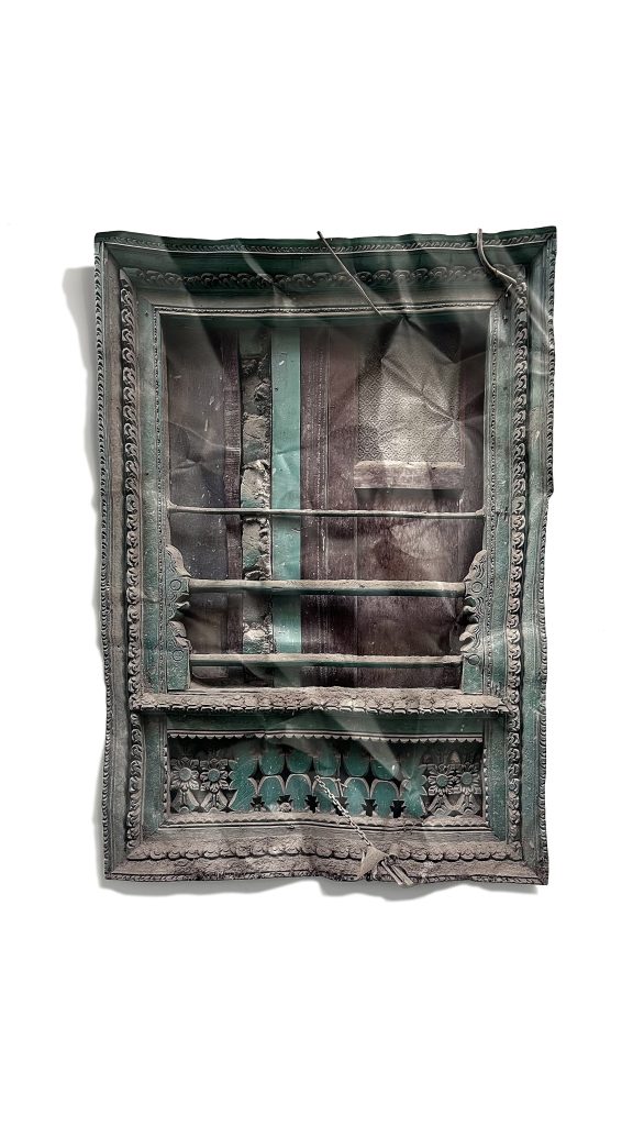 A serie of doors and windows printed on aluminium and manipulated by the artist. Every sample was taken in Nepal