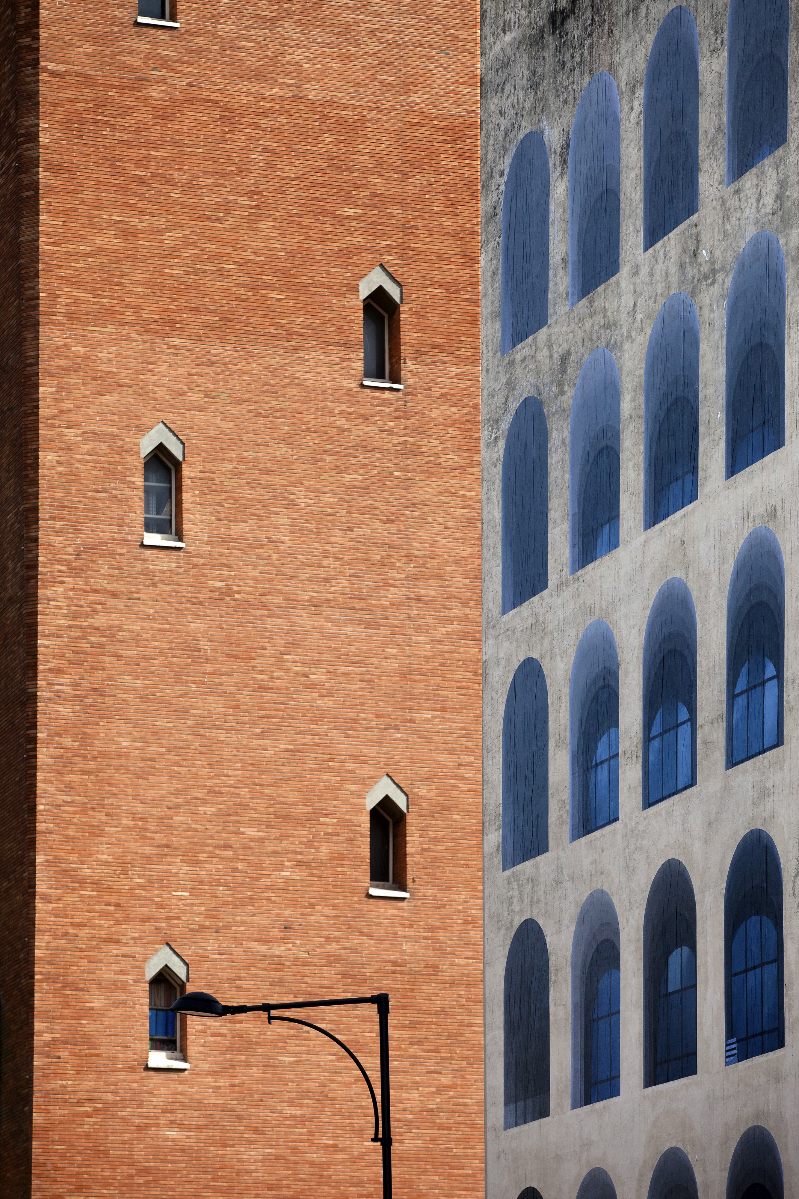 Looking at the Silvio d’Amico school in Gaeta from the outside, one immediately realizes that it is a clear example of Rationalist architecture. For this reason, it was decided to intervene on the surfaces of the two lateral towers of its façade using the classical exemplar of the arches of the Palazzo della Civiltà Italiana (also known as the Palazzo della Civiltà del Lavoro), which employs the same architectural codes as the school building. However, the intervention actually reveals something that goes beyond this initial intention. The act of transposition aims to suggest the very birth of the school through a reduced incision of the monument being represented.