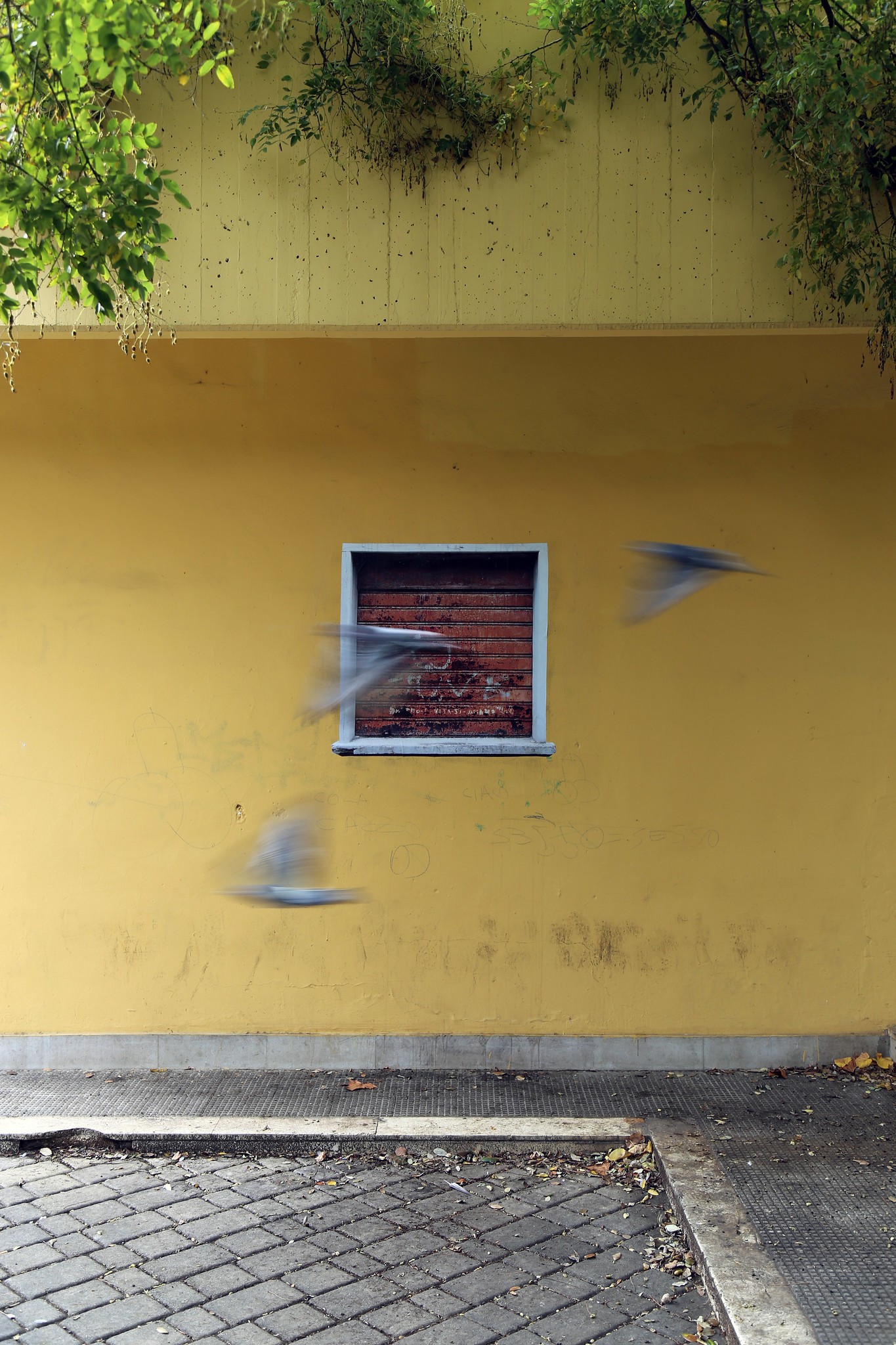 Asking ourselves these and other questions, we pasted a number of life-size photographic posters — depicting windows with shattered panes, rusted shutters or broken-down frames — onto the walls of peripheral neighbourhoods such as San Girolamo and San Giorgio. We put up others, depicting the roller shutters of grand buildings, in the city's "fine district," in the centre and in the old town. These fake shutters were then "defaced" with markers and spray cans.