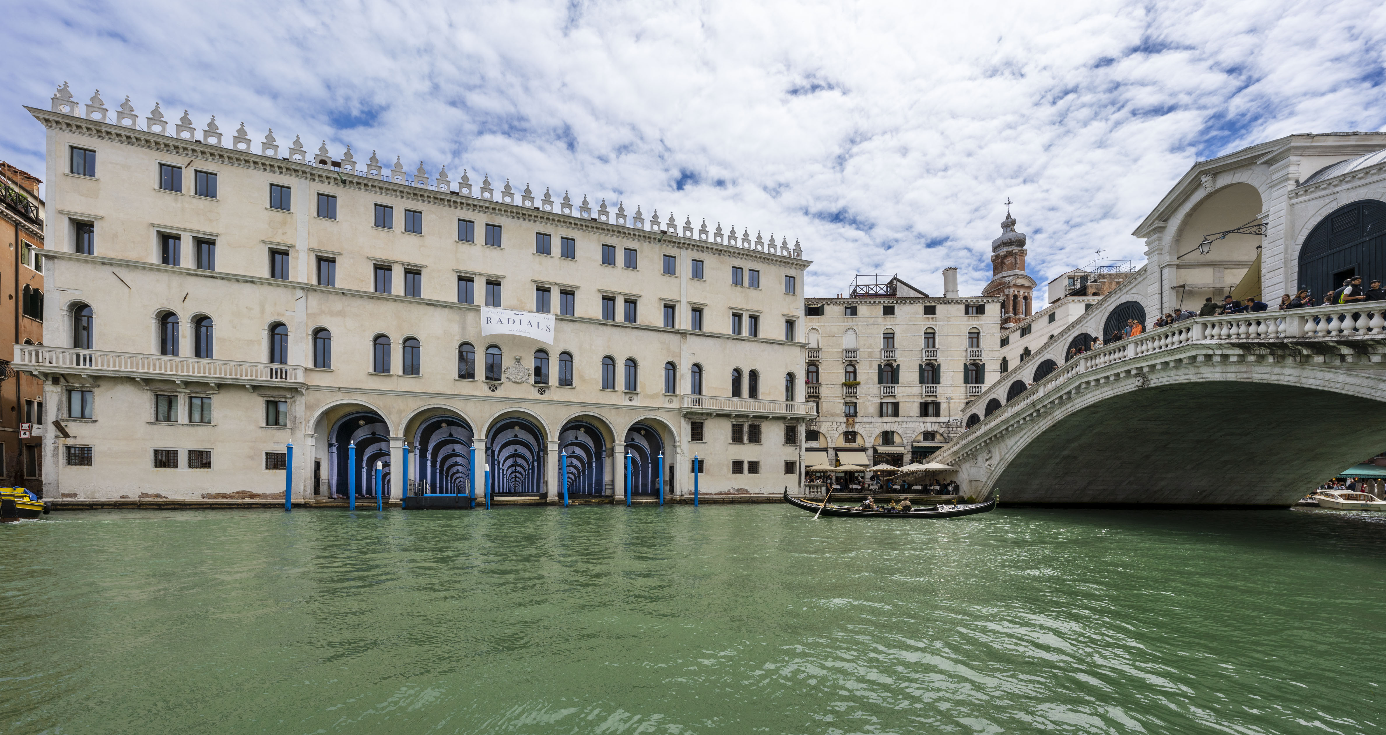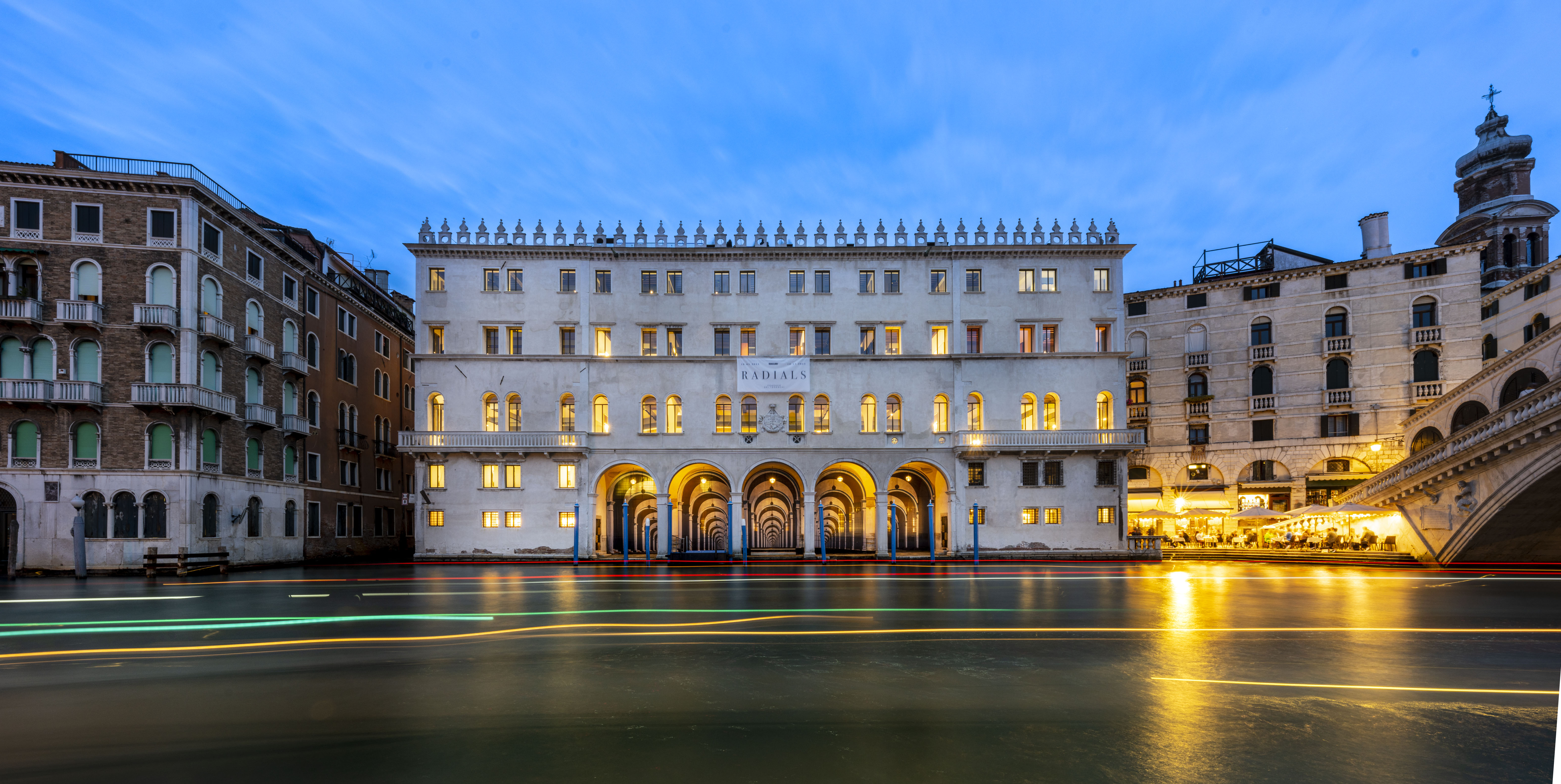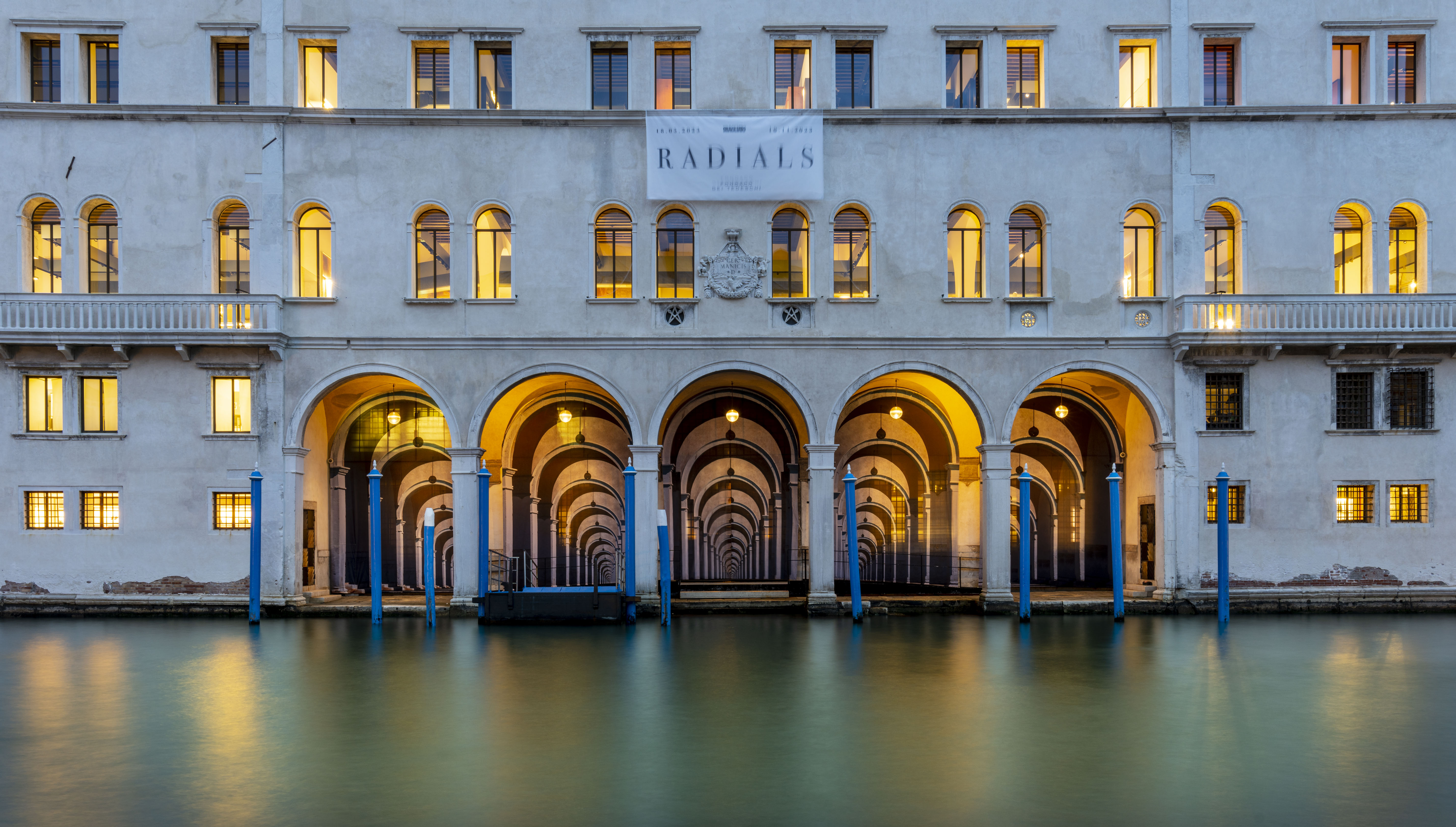 The five large round arches that enclose the vast portico overlooking the Canal Grande are reproduced and multiplied, generating an almost infinite perspective: a vertiginous mise en abyme of the loggia's architectural elements disorients the viewer, astonishes them, and overturns their perception of space, succeeding in blurring the boundaries between fiction and reality.