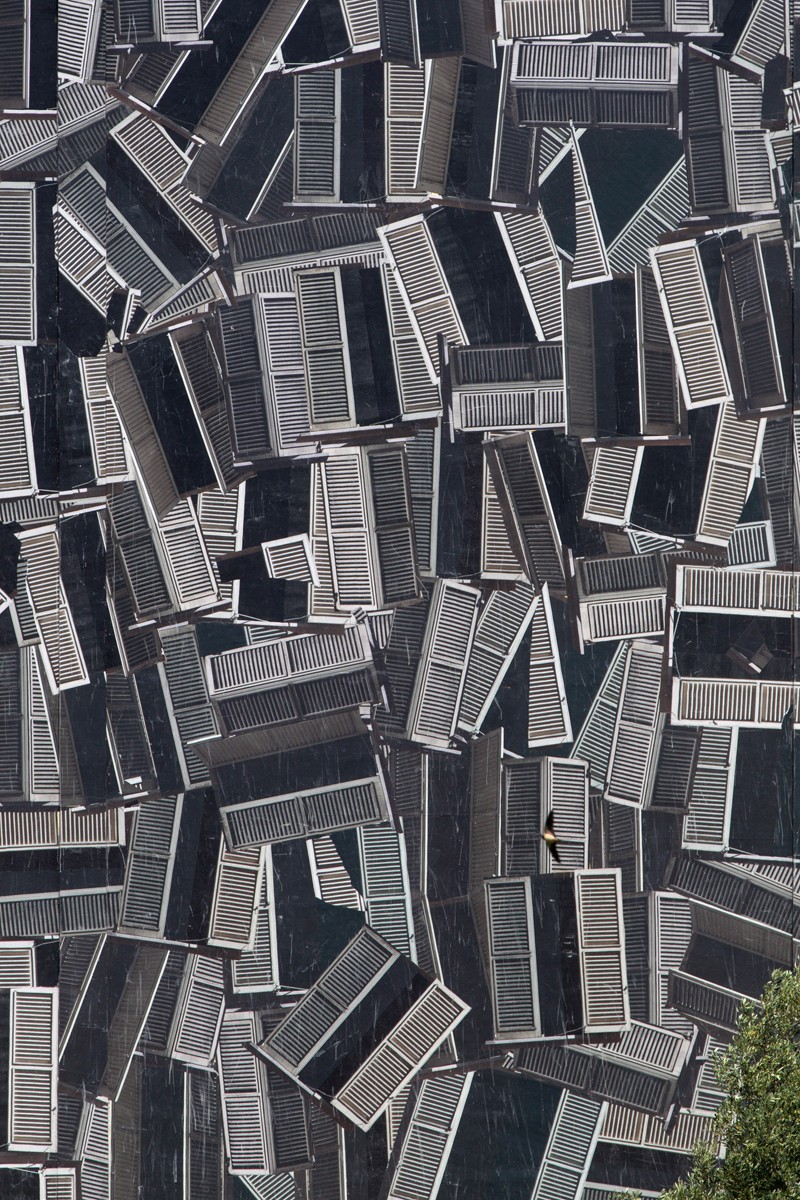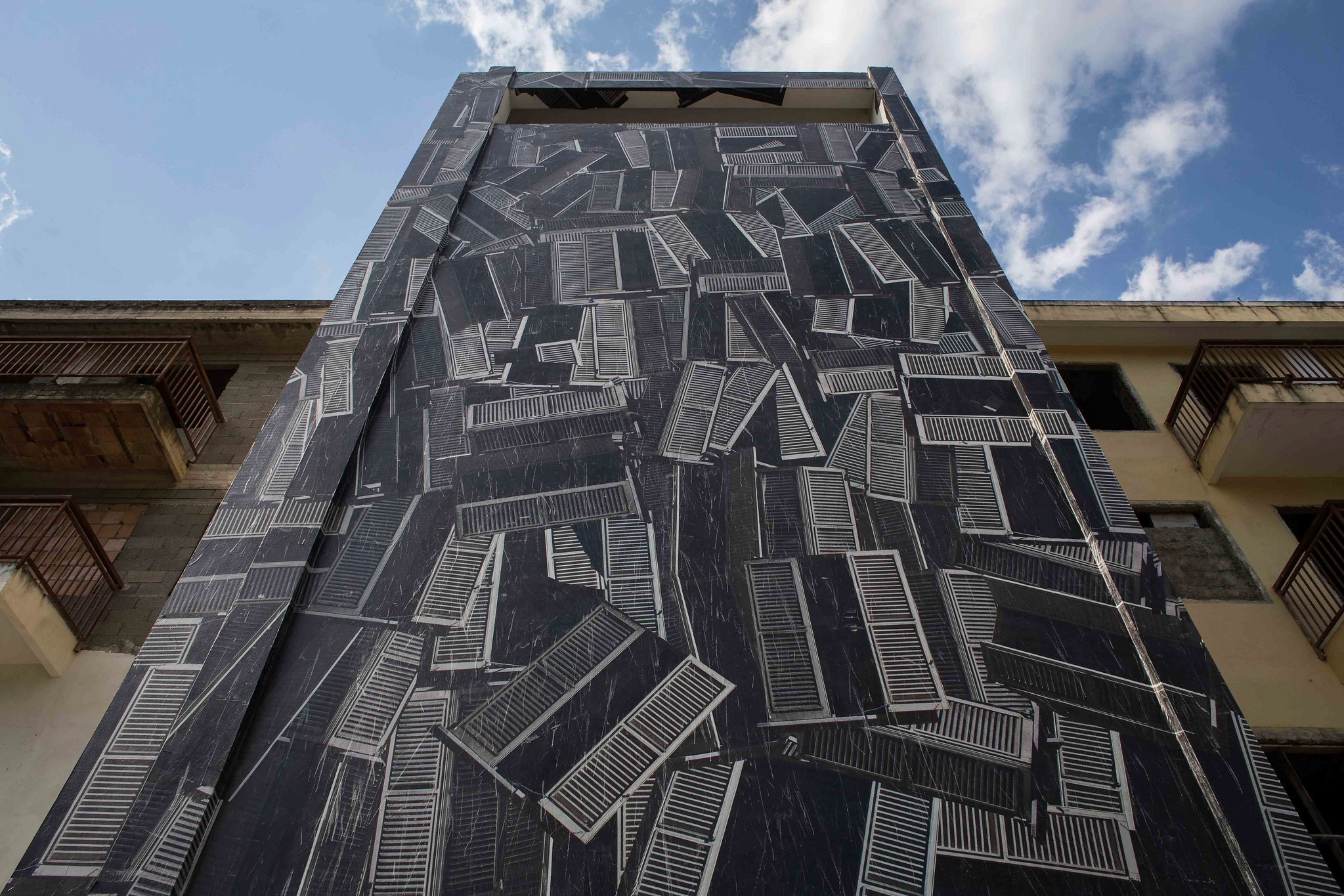 This work is unprecedented in terms of composition, technique and size for the Sbagliato collective, who express their conceptually abstract nature through Abstractism. Through the multiplication and display of the iconic Persian blind via collage on the wall, the work, conceived in a earthquakes high risk area, refers to the social situation in which the younger generations find themselves, living with the earth constantly shaking beneath their feet.